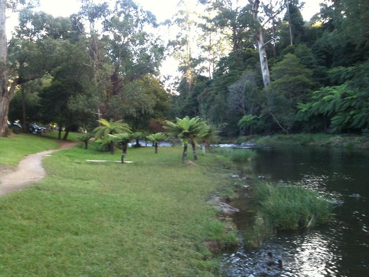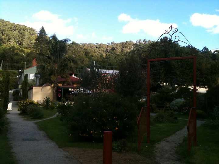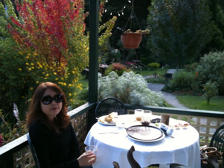 밖에서 들어오는 가을의 싱그러운 냄새와 추억을 얘기하면 한 시간 정도 드라이브를 하니 워버턴 이정표가 반갑게 눈에 들어왔다. 이 곳에 오면 의례 들르는 카페가 있어 거기서 좀 늦은 점심을 먹기로 했기 때문이다. 이 카페는 음식 보다는 예쁜 카페로 더 마음에 든다. 산속에 둘러싸인 마을 이랄까? 산을 병풍 삼아 뜰 앞에는 계곡의 물소리.. 오늘은 옆 카페에서 생음악까지…… 정말 날 잘 잡은 것 같다. 우린 피자와 스콘 그리고 라테를 시켜놓고 주위 풍경을 담느라 분주했다.