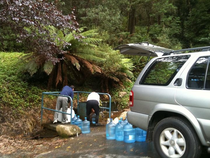 드뎌 목적지 도착.. 웬일로 두 팀밖에 없었다. 역시 루마니아 아저씨가 열심히 물을 담고 있었다. 집에 있는 물통이란 물통은 총 동원했나 보다. 우린 출발 하기 전에 통을 다 씻고 왔는데…… 이 아저씨는 물통을 씻으면서 물을 담으니 언제 끝이 날지 몰라 살짝 화가 나려는데 역시 젊은 사람이 센스있게 (루마니아 아저씨 아들인지 사윈지) 한쪽 수도 꼭지를 내주었다. 우리도 물통 10개에 4주 정도 먹을 양을 담으며 행복해 했다. 언제 와서 먹어봐도 물 맛이 좋고 부드럽다 거기에 건강에 좋다고 하니 금상첨화 아닌가?
